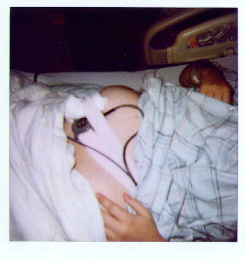 She started with giving my mommy a shot, didn't hurt me, but mom flinched a little bit. After a while, I noticed that the muscles around me started squeezing me a little bit. I could tell that mom was not to happy as she was moaning and breathing kind of funny. She also kept moving around on that damn bed so much I thought I was in a blender. That's just not too much fun upside down in a bag of goo.